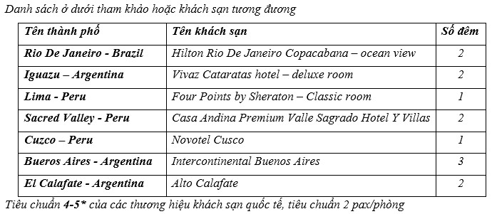 - Lệ phí visa Argentina, Brazil, Peru + phí dịch thuật hồ sơ, thư mời.