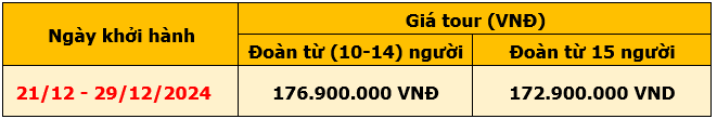 ● Phụ thu Gala Dinner đêm Noel 4 triệu/khách (bắc buộc)