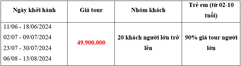 - Trong thời gian 9 ngày làm việc đến trước ngày khởi hành: 100% giá tour