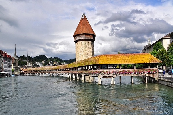 ● Cầu cổ Chapel: cây cầu có mái che cổ nhất ở châu Âu, bắc qua dòng sông Reuss. Điều thú vị là khi tản bộ trên cây cầu này, du khách sẽ được chiêm ngưỡng những bức họa cổ nổi tiếng treo dọc hai bên thành cầu. Cùng với Tháp nước Waaseturn nằm kề bên, cầu Chapel được xem là biểu tượng nhận diện của thành phố này khi xuất hiện trên các tấm bưu thiếp.