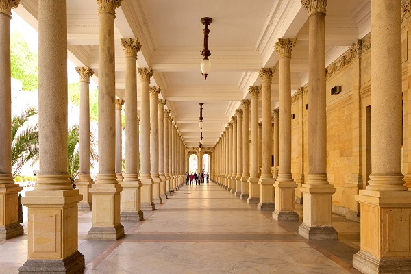 • Mill Colonnade: Biểu tượng của thành phố suối nước nóng Karlovy Vary. Điều tuyệt vời nhất mà bạn được trải nghiệm tại trung tâm thành phố cổ này là một công trình kiến trúc hùng vĩ với 124 cây cột được thiết kế dọc theo hai bên lối đi, và có khoảng 5 vòi nước nóng của 5 suối nước nóng trong số 13 suối nước nóng lớn ở Karlovy Vary sẽ xuất hiện dọc theo hành lang.
