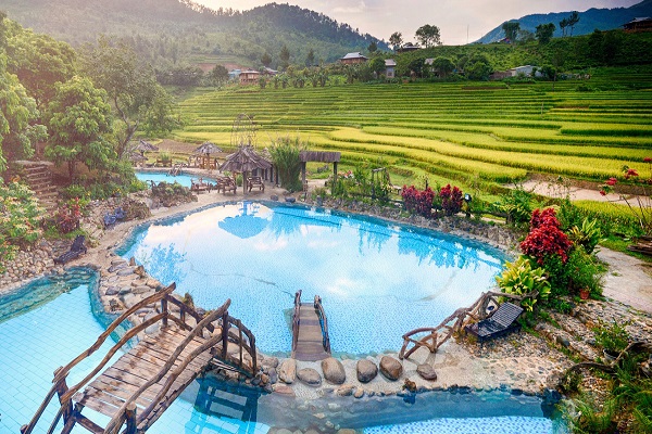 14h00: Tới Trạm Tấu, hướng dẫn viên đưa Quý khách vào Khu du lịch Sinh thái Suối khoáng nóng Trạm Tấu. Tại đây Quý khách tự túc chi phí tắm khoáng tại 4 bể bơi khoáng nóng tại các mức nhiệt độ khác nhau phù hợp tất cả mọi nhu cầu của Quý khách.