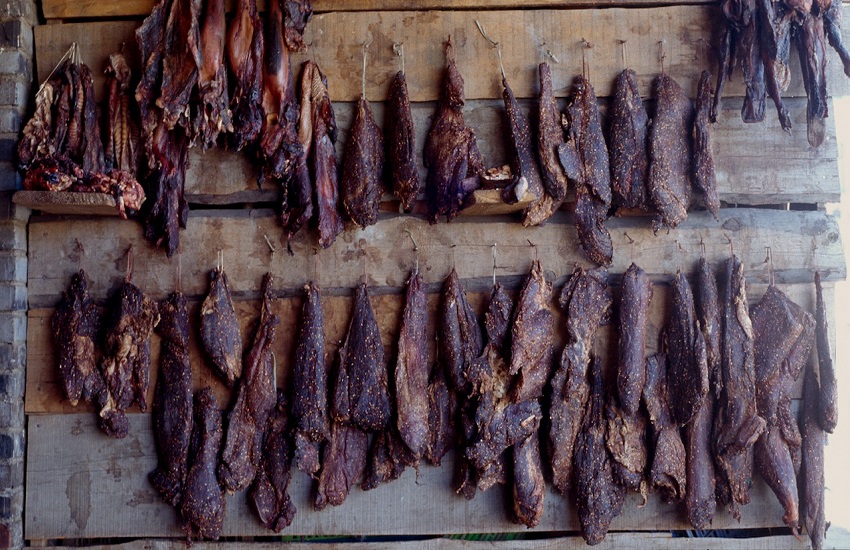 Thời tiết mùa đông không hề dễ chịu, đi kèm với cái rét cắt da là từng đợt gió khô; người dân đã sáng tạo ra món thịt cắt thành dải mang đi phơi ở nơi thoáng khí; tới tháng 2, 3 là đã có thể mang ra dùng.