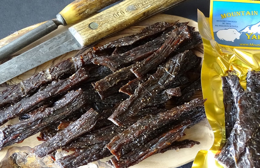 Chỉ khác với thịt khô bên trên, nguyên liệu làm món này là thịt bò sống tại vùng cao nguyên quanh năm có tuyết rơi. Loại thực phẩm siêu sạch cũng được cắt thành miếng to, tẩm ướp gia vị và mang đi phơi khô.