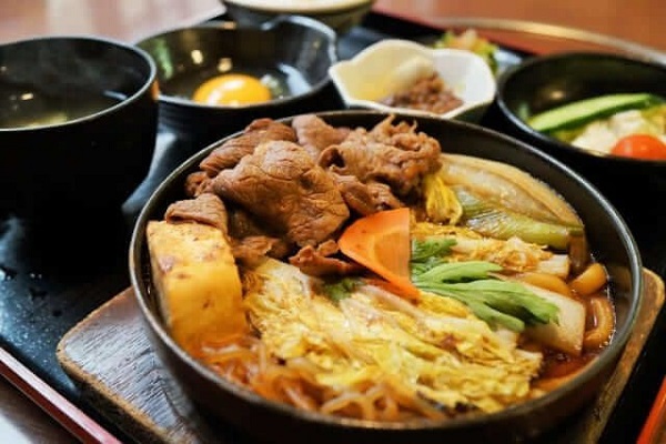 - Sukiyaki: Món ăn nổi tiếng ở Nhật Bản, mang đặc trưng ẩm thực gia đình. Món ăn này được chế biến ngay trên bàn ăn bằng cách nấu chung với những lát thịt bò thái mỏng, cùng các loại rau, đậu phụ và mì sợi.