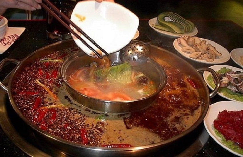 Dưới tiết trời se lạnh, thật không còn gì bằng việc ngồi bên bờ sông Đà Giang ăn một nồi lẩu cay nóng. Món lẩu này được xem là món ăn đặc sản tại đây, mà giá cả chỉ khoảng 60-90 tệ/ nồi dành cho 2 người ăn. Ăn cùng với lẩu chính là cơm trắng đi kèm. Ngoài ra, nhiều du khách cho rằng món rau xào tại các quán lẩu này cũng ngon không kém.