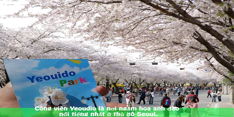 Công viên Yeoudio phải nói là nơi ngắm hoa anh đào nổi tiếng nhất ở thủ đô Seoul. Ở đây có nguyên 1 con đường ngập tràn sắc hoa anh đào và là nơi tổ chức lễ hội hoa anh đào Hàn Quốc. Mỗi mùa Xuân về, người dân Hàn Quốc lại tụ hội về đây, ngắm hoa, cắm trại, chụp ảnh...